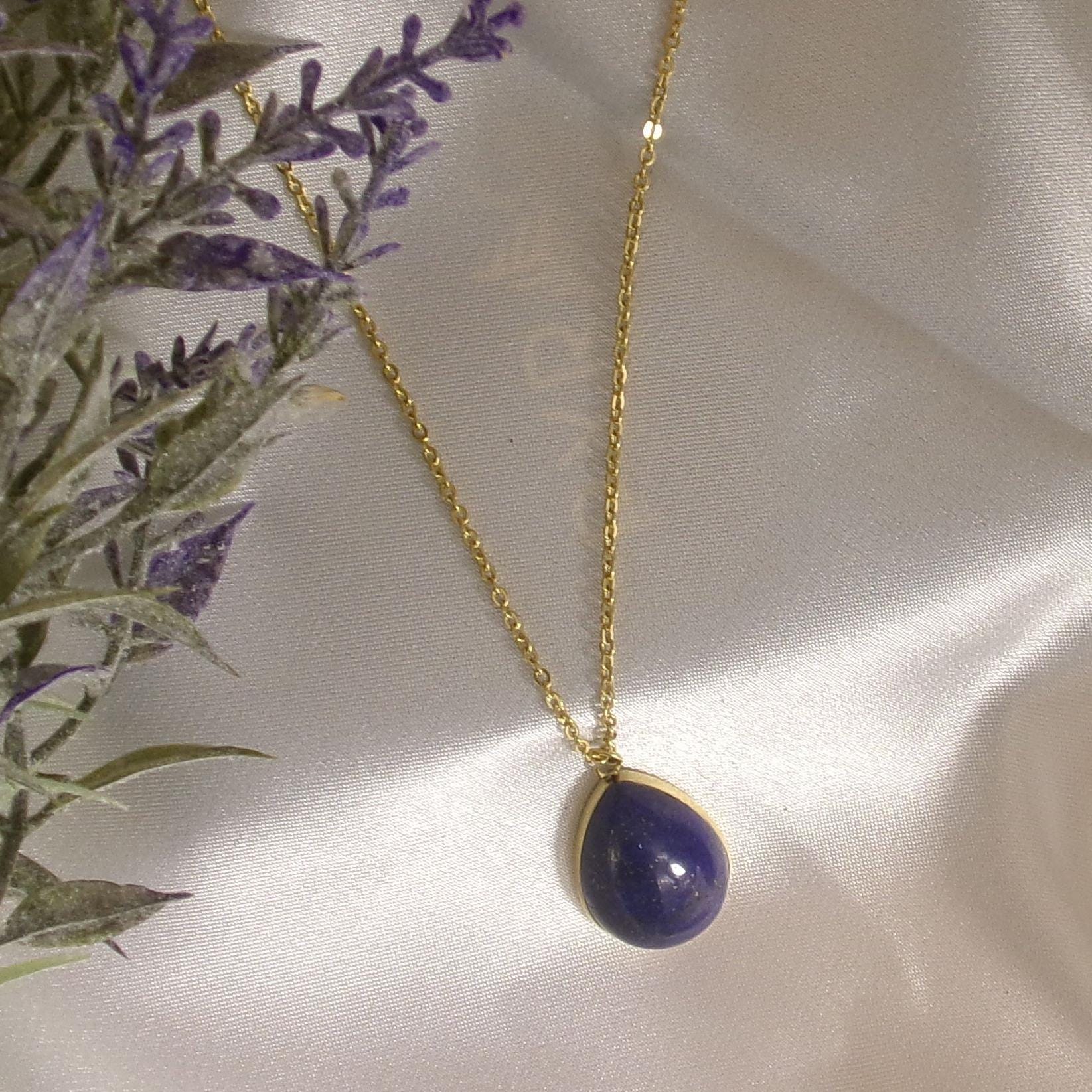 Lapis Lazuli Necklace: 18k Gold Plated Teardrop Gemstone Pendant