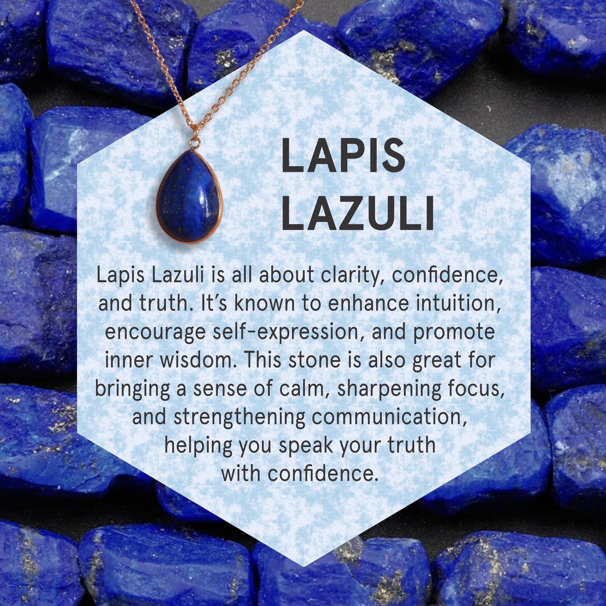 Introducing our stunning Lapis Lazuli Crystal Necklace—a perfect mix of beauty and wisdom. Thoughtfully designed, this necklace features the striking Lapis Lazuli stone, known for its deep, celestial blue and powerful energy.